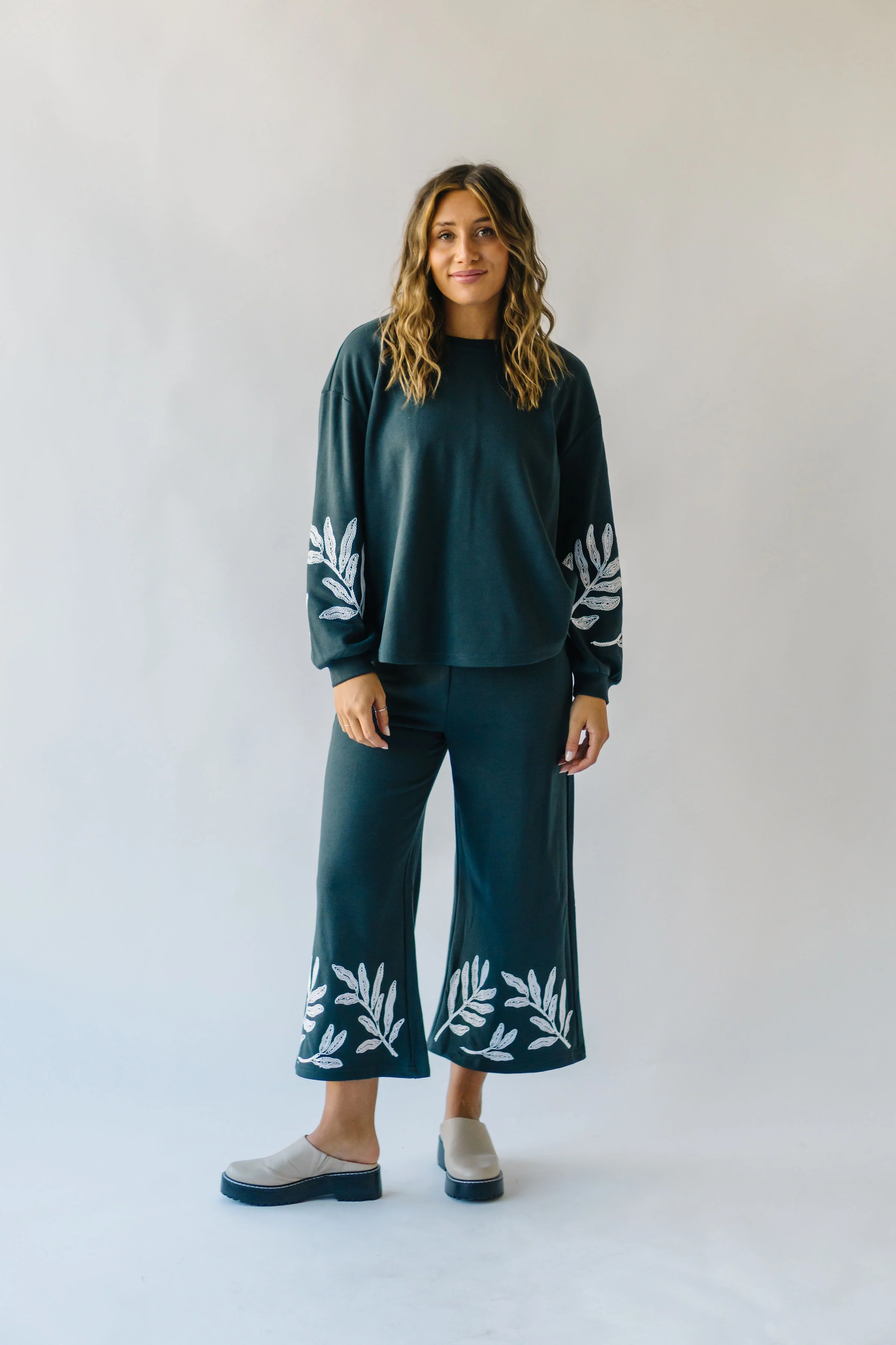 Embrace comfort and style with The Nandy Embroidered Detail Pant in Charcoal. The intricate embroidery adds a playful touch to this classic grey pant. Perfect for any occasion, these pants are a must-have in every fashion-forward wardrobe.