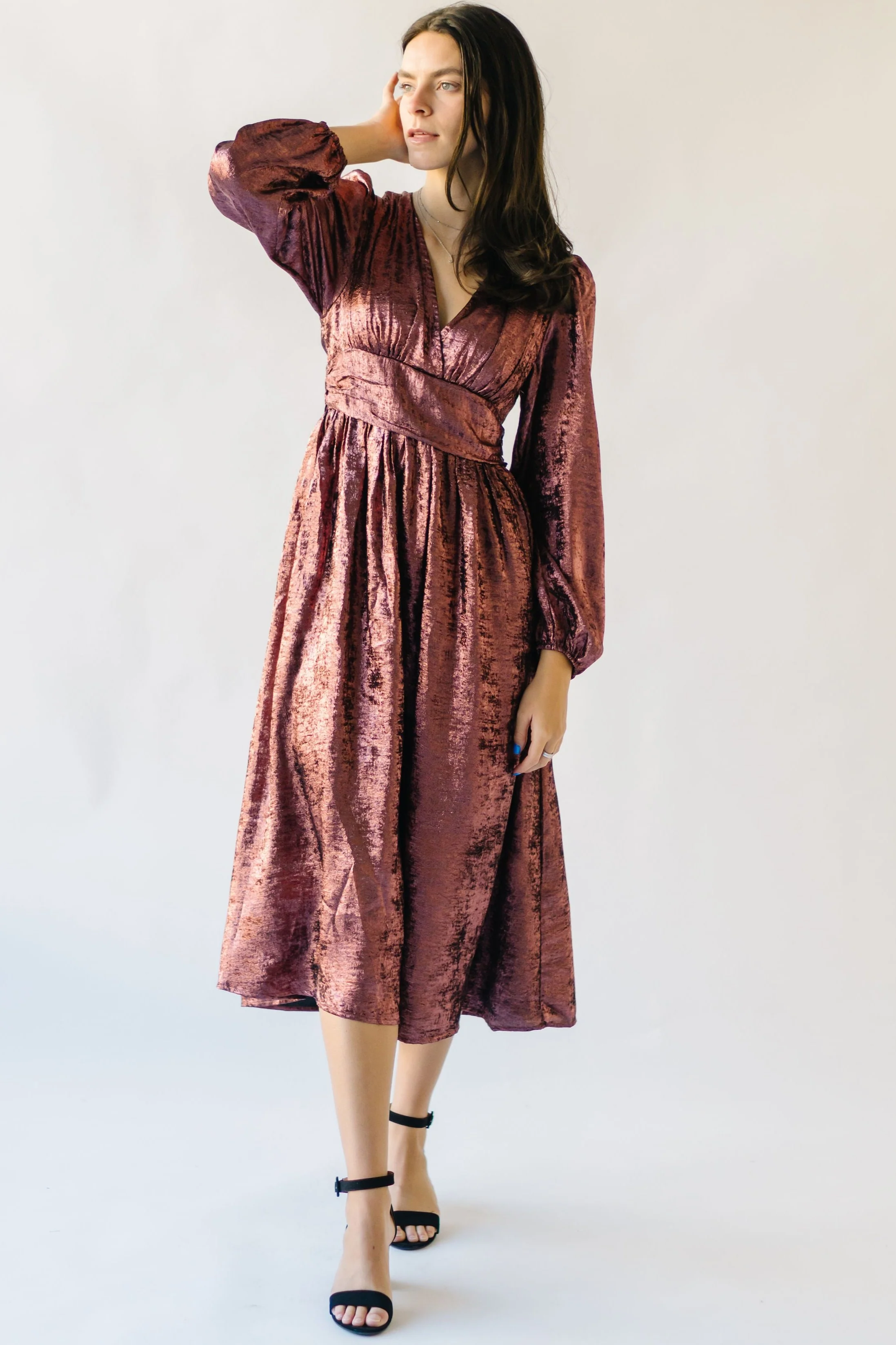 Become the talk of the town in our The Siggard Metallic Midi Dress in Deep Rose! This stunning dress features a metallic sheen that will make you stand out in any crowd. With a flattering midi length and deep rose color, you'll feel like a true fashion icon.