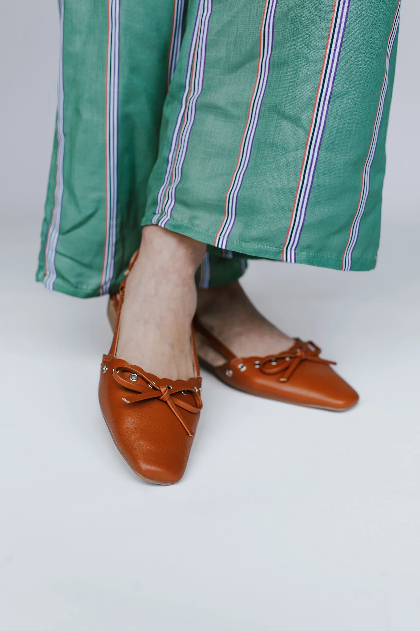 Introducing the Nadya Slingback Bow Flat! Elevate your style with this fun and quirky slingback flat in a unique camel color. The adorable bow detail adds a touch of playfulness, making this the perfect shoe for those who don't take themselves too seriously.