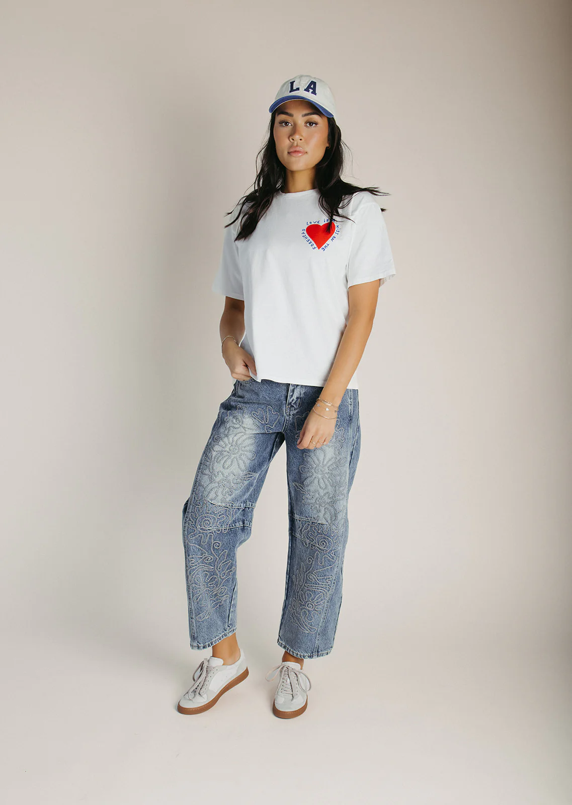 The Brianna Embroidered Barrel Jean in Medium Wash