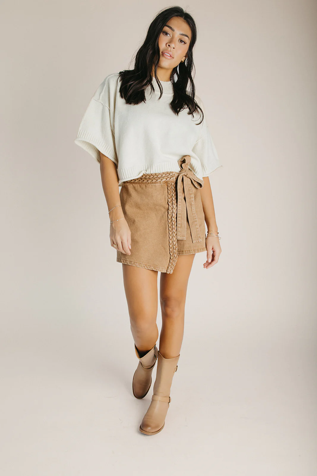 The Palmer Braid Trimmed Skort in Vintage Taupe is your new go-to for effortless style that actually moves with you. This charming skort pairs a flattering silhouette with delicate braid trim detailing that adds just the right amount of personality. The soft vintage taupe hue works with everything in your closet, while the built-in shorts keep you comfortable and confident all day long. Perfect for weekend adventures, casual outings, or whenever you want to look put-together without trying too hard.
