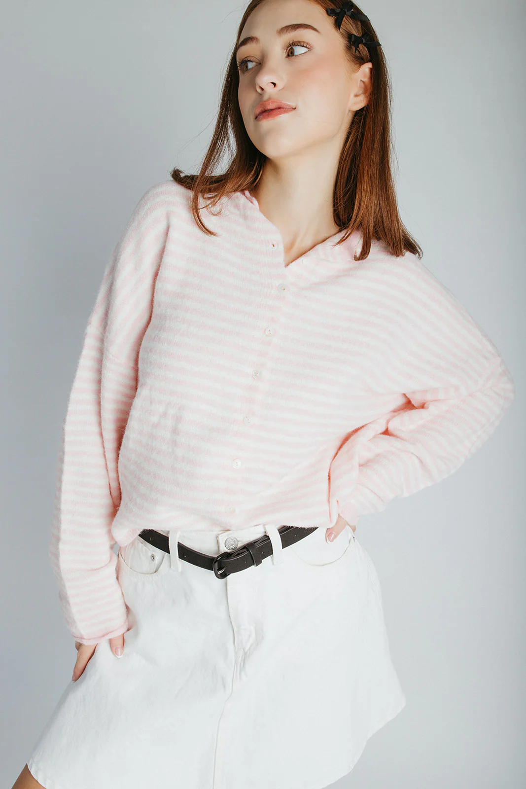 The Riggs Button-Down Sweater in Ivory + Pink Mini Stripe